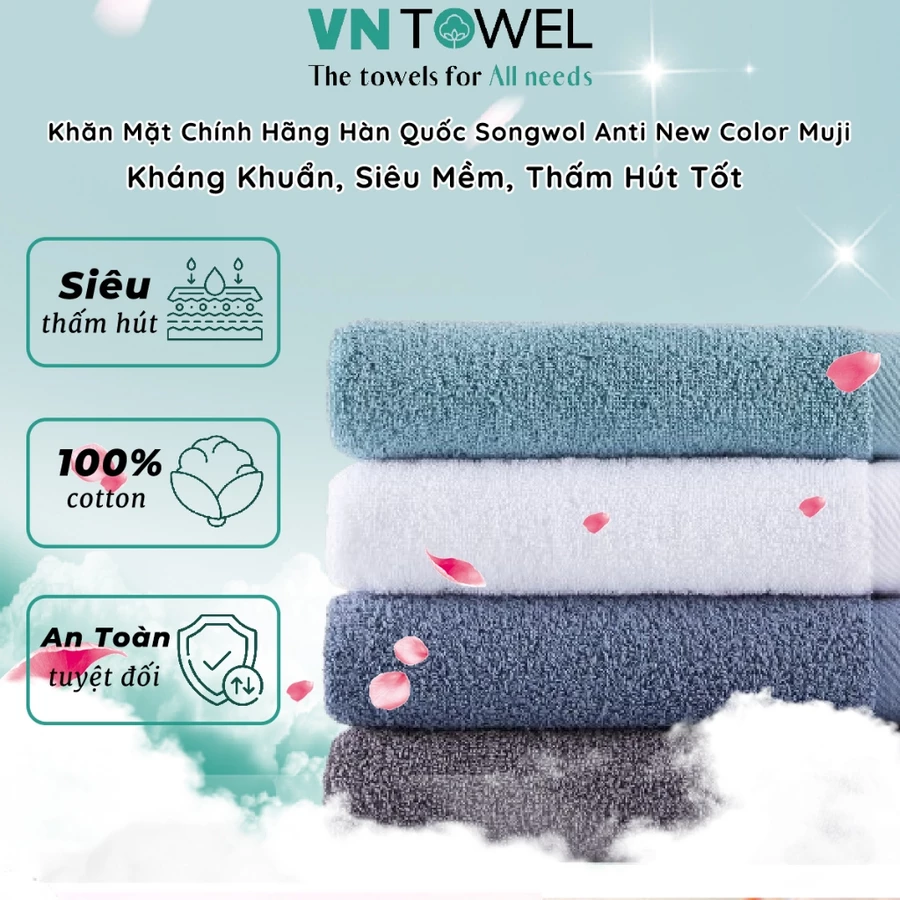 Khăn Cotton Chính Hãng Hàn Quốc Songwol SW Anti New Color Muji – Kháng Khuẩn, Siêu Mềm, Thấm Hút Tốt