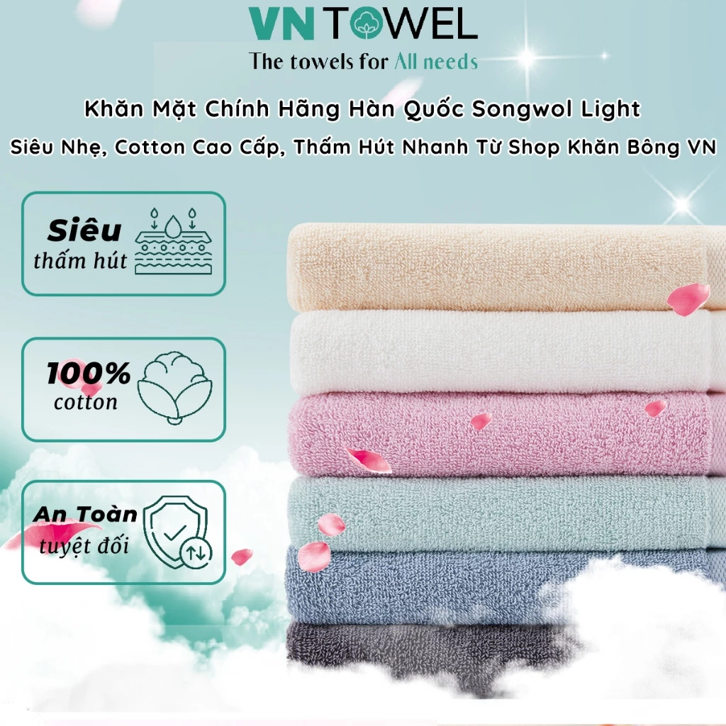 Khăn Mặt Chính Hãng Hàn Quốc Songwol SW Light – Siêu Nhẹ, Cotton Cao Cấp, Thấm Hút Nhanh Phân Phối Bởi Shop Khăn Bông VN Towel
